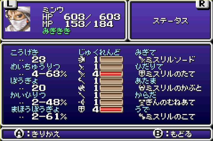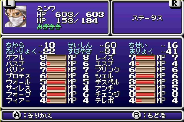 そこで今回、上手い具合にミンウの別れ際のステータスを撮ることができた。