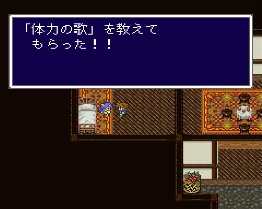 クレセントの町に戻り、ピアノを弾くと、近くにいた吟遊詩人が「体力の歌」を教えてくれた。