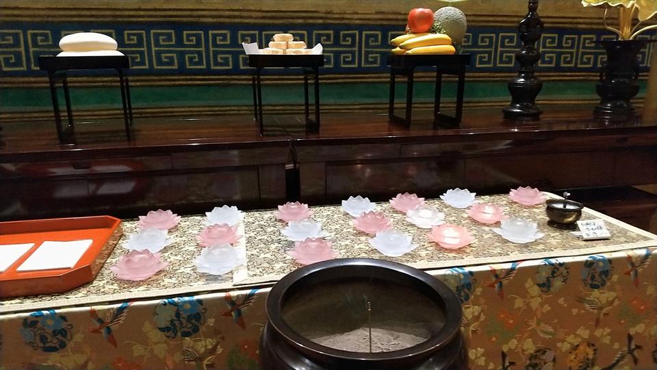 ここでは、一番奥に2本の大きな線香と小さなキャンドルがセットで200円で売られていた。