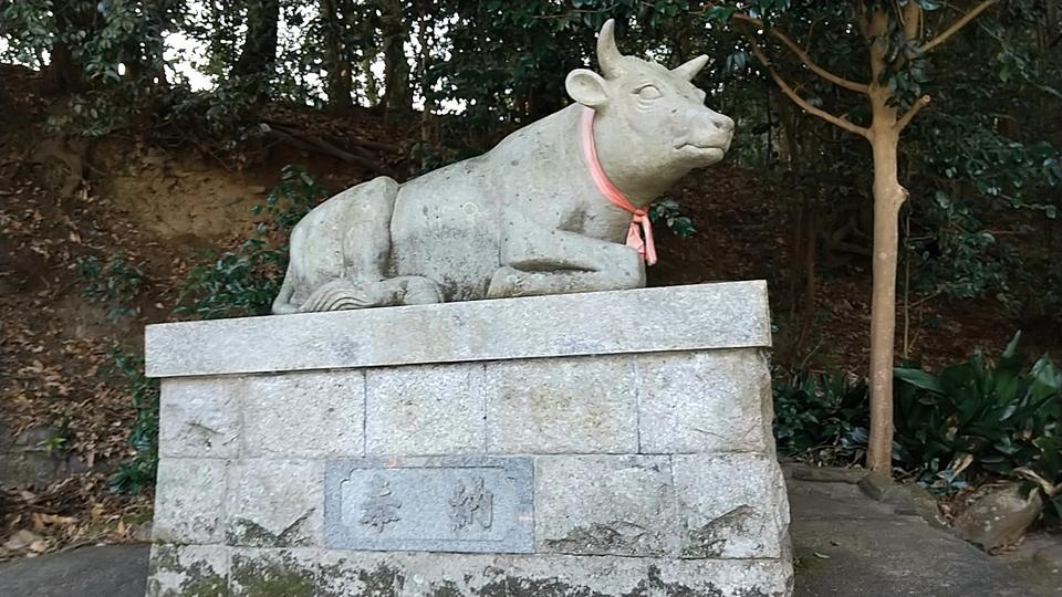 また、拝殿の横には知恵の神様として牛の像が祀られていた。