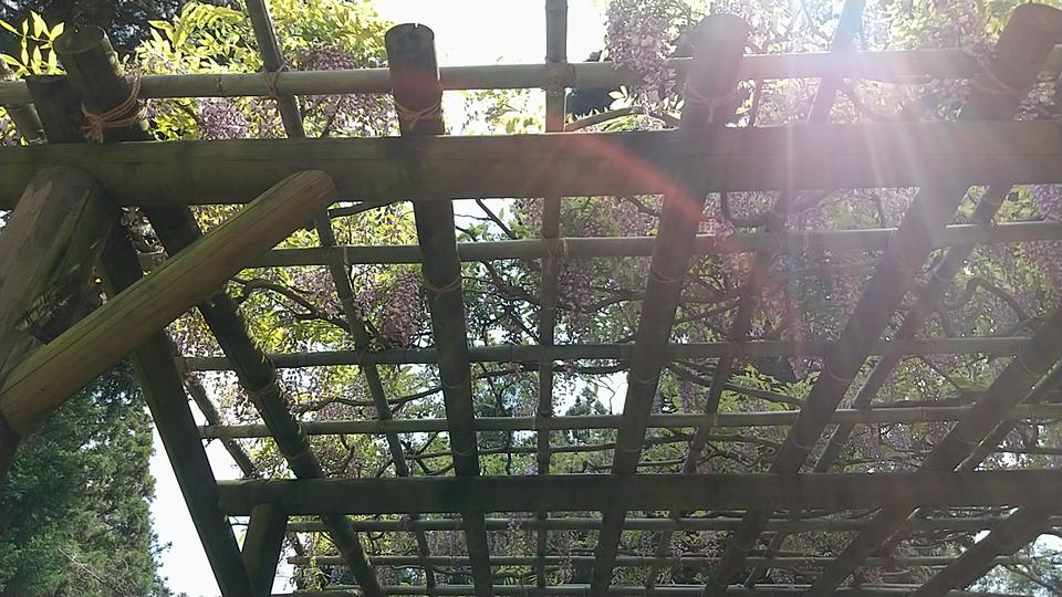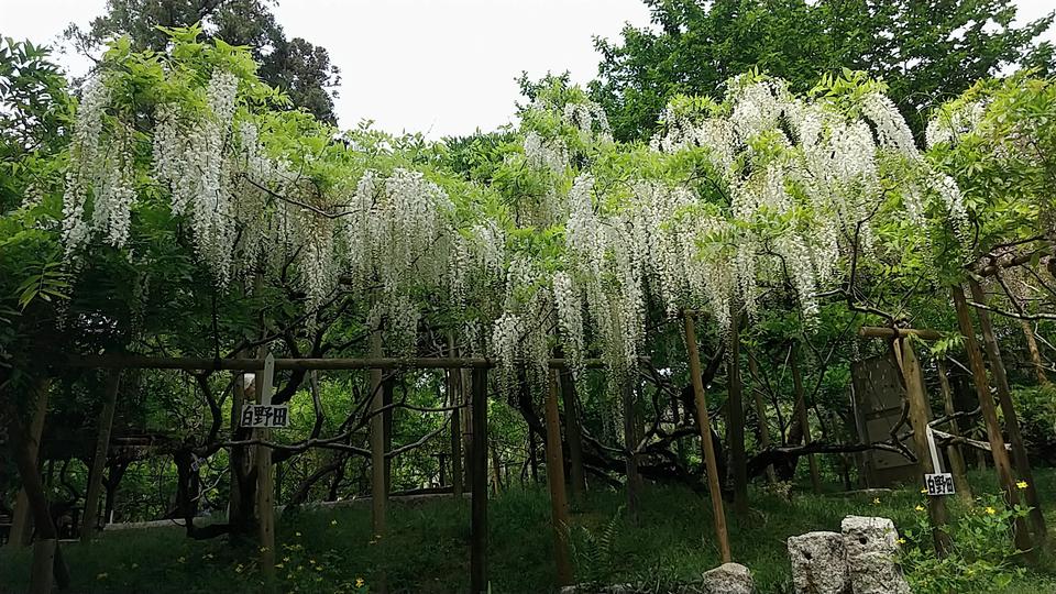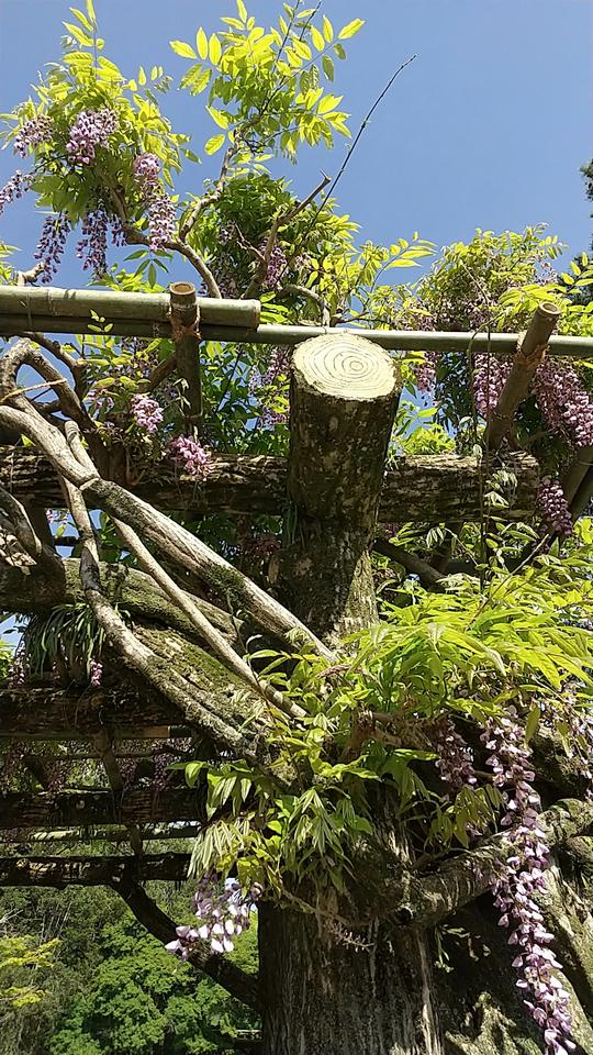 ゴールデンウィークの時期、この植物園では藤の花が見頃を迎える。