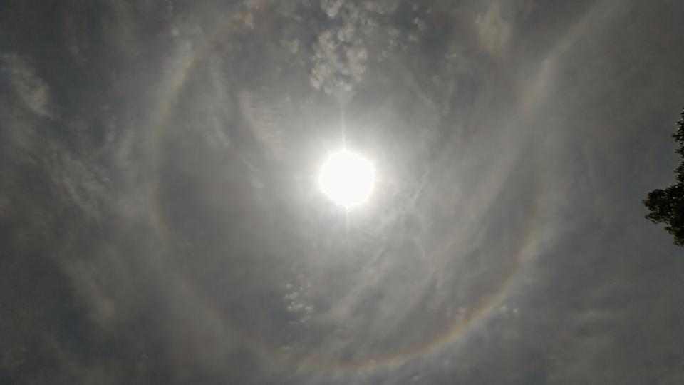 昼になると、太陽に虹の色をした日笠が現れた。