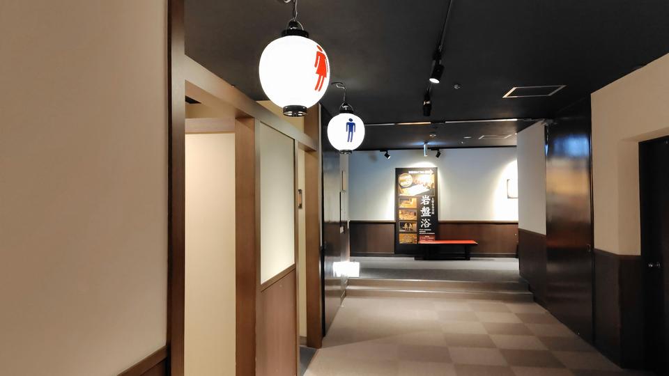 箕面温泉スパーガーデンは、トイレの男女マークが提灯で表示されていた!